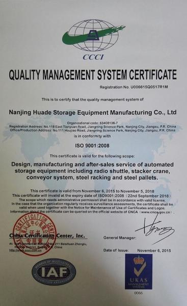 ISO 9001 Quality Management System Certification and ISO 14001 Environmental Management System Certification have been awarded since 2003. At the beginning of 2015, we became the member of MHI (Material handling institute) and received R-mark certificate of RMI.